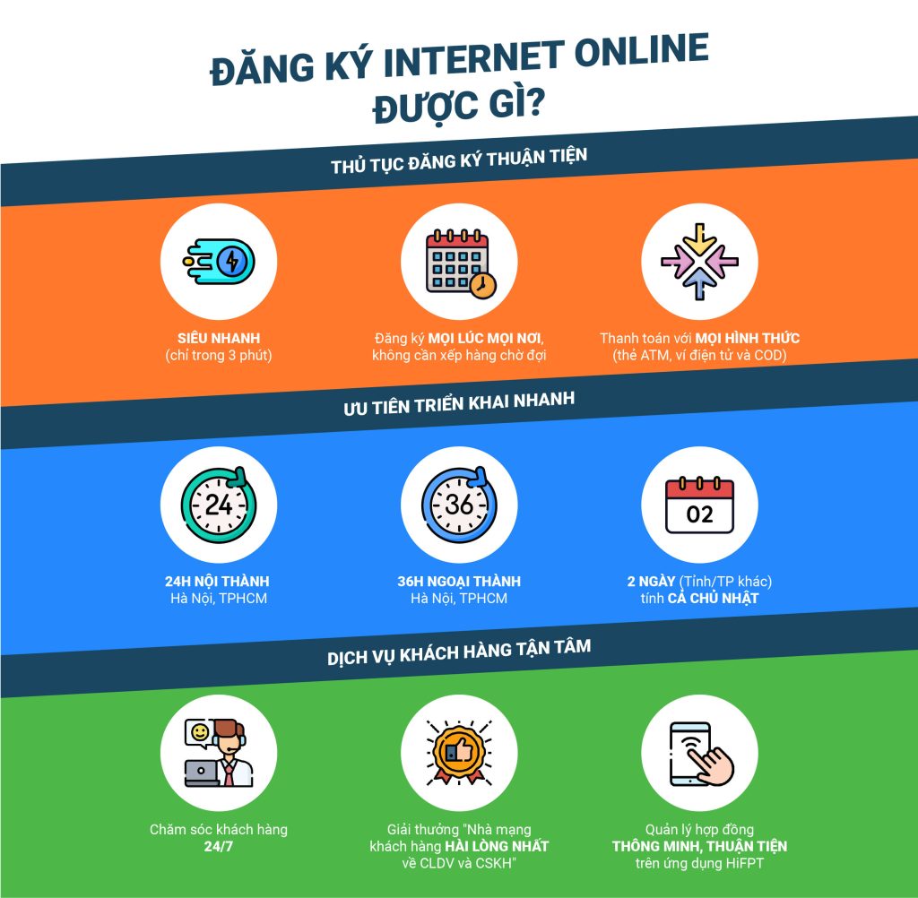 Thông thường, tại các khu vực có hạ tầng mạng như Hà Nội và TP HCM thời gian triển khai không quá 01 ngày. Tuy nhiên, khi gặp các điều kiện bất lợi, không đảm bảo an toàn lao động như mưa bão, ngập nước… thời gian lắp đặt mạng FPT có thể lâu hơn.